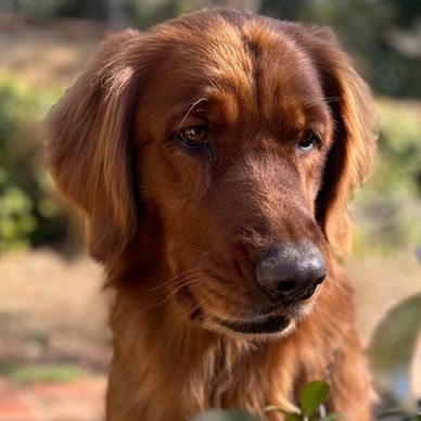 Doc is a stunning dog with lots of drive and personality. He LOVES to go in the pool and to fetch balls, toys, sticks, pine cones, etc. His coat is a dark mahogany red with a full mane & tail. He is the sire of our in-house litters as well as some others locally. He is DNA genetically clear of genetic diseases & OFA certified, heart, hips, elbows & eyes, CHIC certified. k9data pedigree & health testing link: